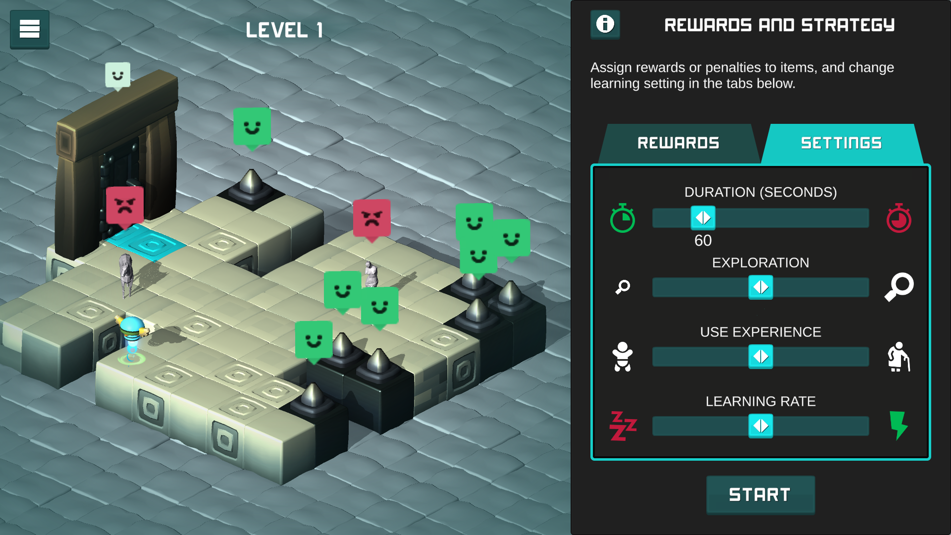 In ArtBot players of all ages learn the basics of Artificial Intelligence. Your quest is to find and retrieve stolen art objects. You train your AI helper to recognise and locate the objects hidden in a maze of dungeons, and see how supervised and reinforcement learning work.